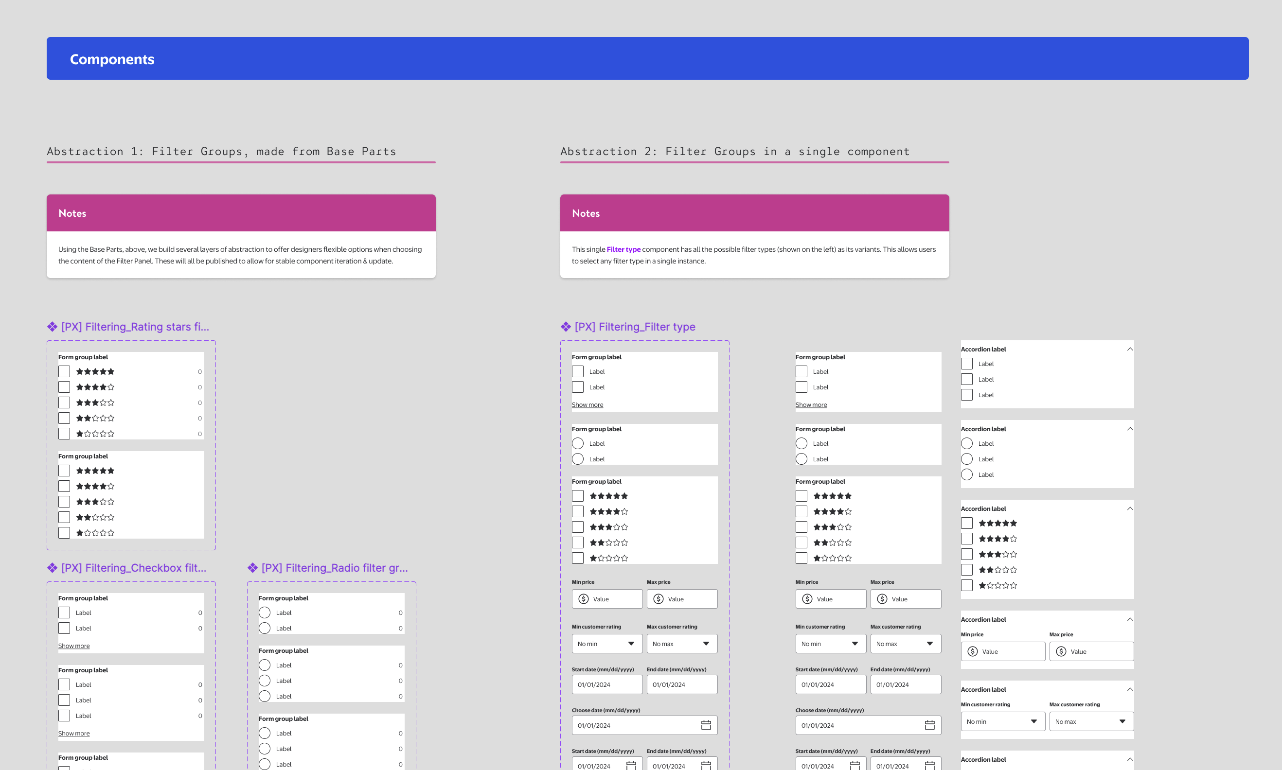 - Audit existing variations of Filter Panel components.